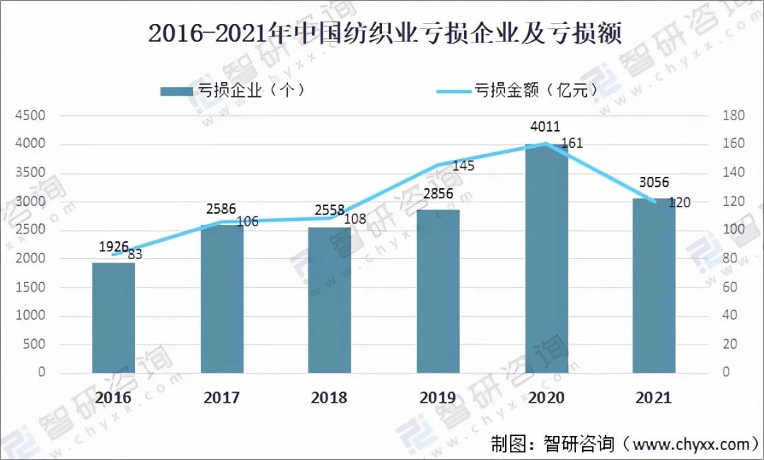 2016-2021年中國紡織業(yè)虧損企業(yè)及虧損額